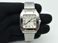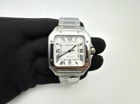 09202722 BV공장 까르띠에 산토스 2018 미디움 스틸 화이트다이얼 스마트링크브레이슬릿